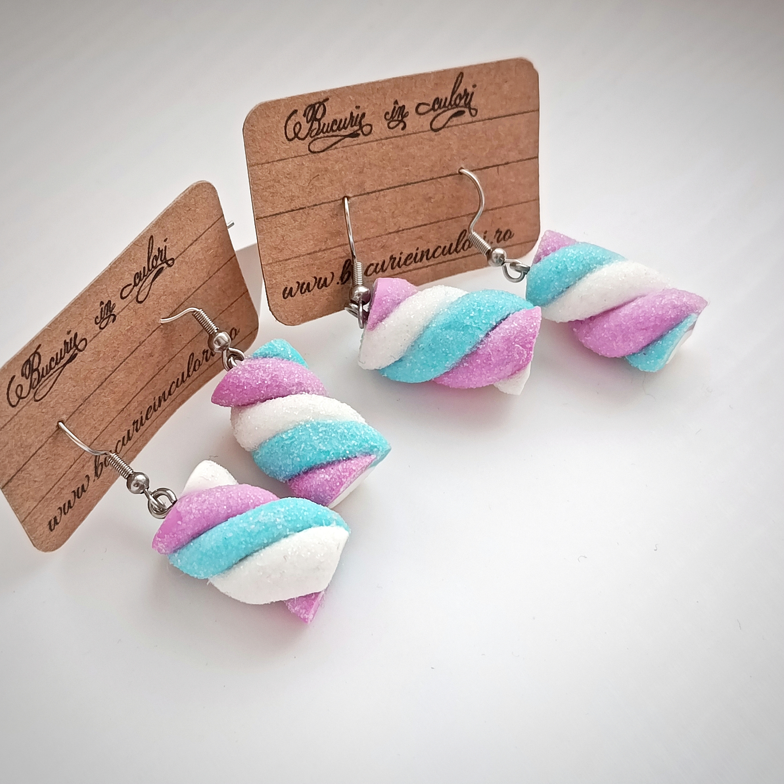 Sunt cercei lucrați manual din lut polimeric, fiecare pereche modelată cu răbdare și un pic de joacă. Îmi place să cred că aduc cu ei o stare bună, nu doar un accesoriu.